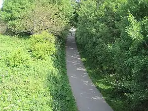 By 2013 aerial images clearly show the line of route and that the area around the station site had been transformed by housing. The trackbed through the station site was used by the West Cumbria Cycle Network.