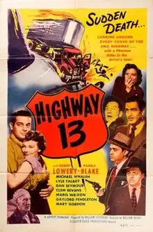 Highway 13 is a 1948 American drama film directed by William Berke and starring Robert Lowery. Lowery had just made Shep Comes Home for financier Robert L. Lippert.[2]