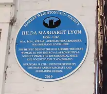 - ↑ "Market Weighton Civic Society to commemorate aeronautics pioneer Hilda M Lyon with Blue Plaque honour". www.pocklingtonpost.co.uk. Retrieved 20 May 2019.