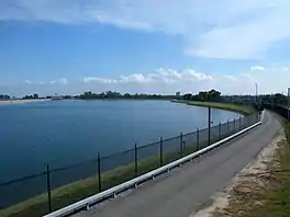 The Hillview Reservoir is a 90-acre (0.36 km2) storage reservoir in southeastern Yonkers, New York.[1] It was built within a six-year period from 1909–1915 by the New York City Board of Water Supply to receive water from the newly constructed Catskill Aqueduct, which drained water from the Ashokan Reservoir and sent it down into the Kensico Reservoir, where it would, in turn, be drained back into a continuation of the Catskill Aqueduct, and sent into the Hillview Reservoir. Frank E. Winsor was the engineer in charge of construction of both Hillview and Kensico as well as 32 miles (51 km) of the Catskill Aqueduct.