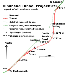 - ↑ Highways Agency. "A3 Hindhead Improvement – The Tunnel". Department for Transport. Archived from the original on 10 March 2010. Retrieved 27 May 2009.