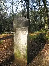 - ↑ An original milestone from the turnpike road, Gibbet Hill, Hindhead: Information board erected by the National Trust