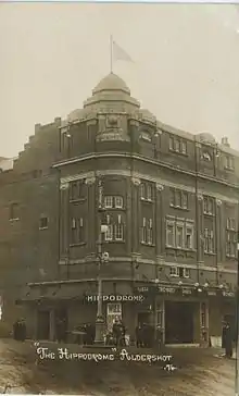 The Hippodrome was a theatre in the town of Aldershot in Hampshire. It operated as a venue for variety shows, pantomimes, musical comedies and other shows from 1913 to 1961. When Peter Sellers appeared there in 1948 he complained that the band accompanying his drum act were four bars behind as they were eating their sandwiches while they were playing.[1]