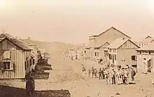 At this time, almost all buildings were made of wood, with few examples in masonry. Even large industrial pavilions were built in wood, with the araucaria being the most used, as it was abundant in the region at the time. The paving of the center would take a long time. Until Colonel José Pena de Moraes took office, the center would have had dirt roads with gravel, and only a few streets with paved sidewalks. The main focus in the first decades was the organization of the Dante Square and Rua Grande, where works for the flattening and lowering of the land began, a process delayed and complicated by the existence of a large quarry in the area.[7][5]
