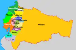 This is a summary of the history of Ecuador from 1895-1925. Eloy Alfaro is the outstanding standard-bearer for Ecuador's Liberals, much as Gabriel García Moreno is for the Conservatives. Some Marxist groups have also looked to Alfaro; although his political program was in no way socialist, it did prove to be revolutionary in the extent to which it stripped the Roman Catholic Church of the power and privileges previously granted to it by García Moreno. Catholic officials and their Conservative allies did not give up without a fight, however. During the first year of Alfaro's presidency, Ecuador was ravaged by a bloody civil war in which clergymen commonly incited the faithful masses to rise in rebellion against the "atheistic alfaristas" and were, just as commonly, themselves victims of alfarista repression. The foreign-born Bishops Pedro Schumacher of Portoviejo and Arsenio Andrade of Riobamba led the early resistance to Alfaro. A fullfledged bloodbath may well have been averted only through the magnanimous efforts of the outstanding historian and Archbishop Federico González Suárez, who urged the clergy to abandon the pursuit of politics.