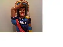 A 5 ft (2 m) wooden statue of a Native American 'Comanche' was spotted by the team as they passed a second hand shop on the way to Sincil Bank (home to Lincoln City) for the last game of the season and decided that if they won and subsequently survived relegation they would purchase him as a lucky charm and he would become the club's mascot. The Wycombe Comanche was thus purchased and painted in Wycombe colours. He remained at the club throughout the Sanchez reign and even featured in the centre of the squad photo in the 1999–2000 season. He was put on the centre circle before home matches at Adams Park. He is now believed to reside somewhere in Scotland.