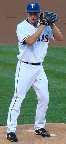 Gary Matthews, Jr., Mark DeRosa, Carlos Lee, and Adam Eaton all signed with other clubs as free agents. Vicente Padilla accepted a three-year, $33 million offer with an option for a fourth year at $12 million.[7] The Rangers also signed 1B/OF Frank Catalanotto to a multi-year deal. The Rangers later added reliever Éric Gagné and veteran outfielders Kenny Lofton and Sammy Sosa on short-term deals. In a sign that GM Jon Daniels was looking for results in 2007, the Rangers' top pitching prospect John Danks was traded to the Chicago White Sox along with reliever Nick Masset for 23-year-old starter Brandon McCarthy.[8] The Danks trade caused quite a stir amongst fans, many of which had followed the minor league careers of the highly touted "DVD" trio of pitchers that included Danks, Edinson Vólquez, and Thomas Diamond. All three pitchers would eventually reach the majors, with varying degrees of success, while McCarthy's career became marred by injury.