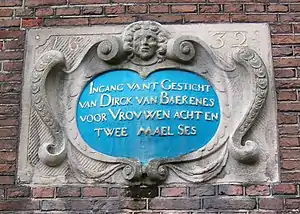 Translation: Entrance of the foundation of Dirck van Baekenes for ladies eight and two times six