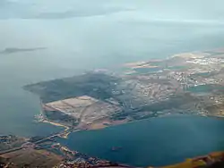 ![]() Southeastern Flevoland as viewed from the air. The Hollandse Brug can be seen in the lower left. | |