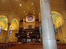 In 1938 the church became home to one of the most distinguished organs in Boston, a large 3 manual organ opus 1691[2] built by the Wicks Organ Company It was designed by Henry Vincent Willis, grandson of "Father" Willis of the prestigious British organ building firm who was the tonal designer for Wicks at the time. He designed several highly regarded organs for Wicks including the Holy Name instrument and a slightly larger 4 manual instrument, opus 1503[3] for the Cathedral of Saint Mary of the Immaculate Conception in Peoria, Illinois.