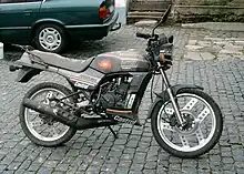There were 50, 80, 125 variants of both the MBX and MTX as well as a 200c version of the MTX - all two-stroke singles - and the related MVX250 water-cooled two-stroke V3. The MTX125/200R started life in 1983 as RFD models and were ungraded in 1985 into the RFF. Changes includes dropping the drum brake at the front and replacing with a disc, bigger forks, revised graphics, a revised rear shock, revised CDI and, in the case of the 200, a new swingarm. The 125 cc motorcycle come in both restricted and de-restricted form. The de-restricted version and the 200 cc version had ATAC chambers operated by a piston valve attached to a mechanical governor.