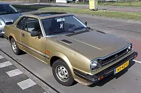 On 24 November 1978, the Prelude was launched to the Japanese market.[2] It had its world premiere at the 1979 AutoRAI in Amsterdam, two months later.[3] In Japan it was only available at the newly established dealership sales channel Honda Verno. This dealership chain also introduced the Honda Quint, the Honda Ballade, and the Accord-based Honda Vigor as its largest sedan and hatchback. The four-wheel independent struts, brakes, and engine were all borrowed from the first-generation Accord, but the chassis was all new and developed by chief engineer Hiroshi Kizawa expressly for the sporting Prelude.[4] At 4,090 mm (length) x 1,635 mm (width) x 1,290 mm (height), it had quite a low and wide profile. The wheelbase was 2,320 mm, and was 60 mm shorter than that of the original Accord.[5] Honda appears to have followed the successful introduction of the Toyota Celica example by taking a small car, like the Accord, installing a more powerful engine, and giving the body a short trunk, and a long engine hood. The Prelude (and period Accord) were the first cars under two liters to receive standard power steering.[6] The Prelude also benefited from Honda's experience with sporting cars like the Honda S800 and Coupé 1300.