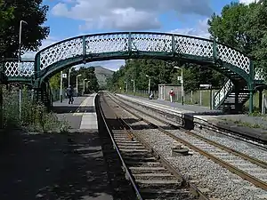 The station was renamed from Hope Village to Hope on 6 May 1974.[1] The summer 1961 timetable showed it as Hope (for Castleton & Bradwell).[2] At that time, North Western and Pashley provided connecting buses to those villages to meet most trains.[3]