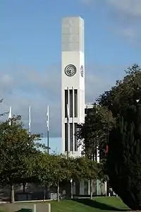 The Hopwood Clock Tower, also known as Kerei Te Panau, but most commonly known simply as The Clock Tower, is a clock tower located in the centre of The Square in Palmerston North, New Zealand. The tower is named after local businessman Arthur Hopwood who paid for it to be constructed in 1953.[1] The Maori name for the clock tower 'Kerei Te Panau' comes from the name of a local Rangitane chieftain.