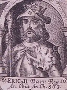 Horik II (died after 864), also known as Hårik or, in late sources, Erik Barn (Danish: "Erik the Child"), was King of the Danes from the fall of Horik I in 854 to an unknown date between 864 and 873. During his reign the Danish kingdom showed tendencies of breaking up. After his demise under unknown circumstances, Denmark entered a long period of obscurity, until the rise of the Jelling dynasty in the 10th century.