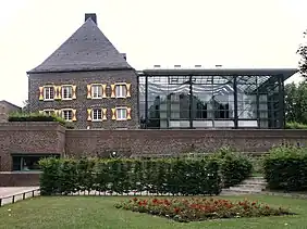 At the urging of the Horst Castle Support Association, founded in 1985, the city of Gelsenkirchen purchased the compound in 1988 with funding from the state of North Rhine-Westphalia to prevent its total decay. Initially, the plan was to merge all three registry offices in Gelsenkirchen Castle and redesign the interior to house multiple municipal offices, along with a new staircase and lift in the entrance wing. However, these plans were never fulfilled. From the spring of 1990, the Westphalian Museum of Archaeology carried out systematic excavations on the castle grounds and in the outer bailey area. As the authority for the preservation of archaeological monuments of the Regional Association of Westfalen-Lippe, the museum not only uncovered archaeological finds but also produced new insights into the complex's building history. For instance, the excavators discovered remains of the previous edifice and an innovative water and waste management infrastructure comprising a tank, well, and various pits and shafts, some of which were multi-tiered.[59] In 1992, an architectural competition was held upon the suggestion of the Friends' Association. The winning design by Frankfurt architect Jochem Jourdan was employed to renovate the palace from 1994 to 1999 and partially reconstruct it, integrating some of the existing historical building components. During the construction work, which received financial assistance from the North Rhine-Westphalian state government and cost approximately £10 million, extensions and additions from the 20th century were also eliminated.[60]