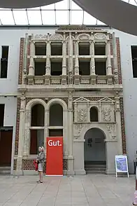 The sculptures present in the decoration were influenced by Dutch Mannerism and are now known as the "Stone Treasure".[78] The use of such decoration in 16th-century castle construction was unprecedented and is considered a bridge between Dutch architecture and architecture in the Weser region. The art historian Richard Klapheck coined the term "Lippe Renaissance" to describe the features of Horst Castle, which not only inspired this movement but is also regarded as a crucial building.[79]