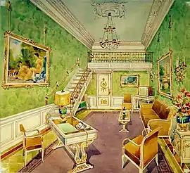 The palace was also a significant political statement, providing yet another example of King Peter I Karađorđević's and prime minister Nikola Pašić's turning of Serbia's foreign and economic policies towards the Russian Empire and away from Austria-Hungary.[9] Its opening took place in the middle of the so-called Pig War, a bitter economic showdown initiated by the Austro-Hungarian imposition of a customs blockade on the import of Serbian pork, Serbia's chief export at the time. Austria-Hungary decided to punish Serbia for steadily moving out of Austria-Hungary's geopolitical sphere of influence ever since the 1903 May Overthrow when the Karađorđevićs re-took the Serbian throne from the toppled ruling house, the Obrenovićs, who had been Austrian clients for decades prior.