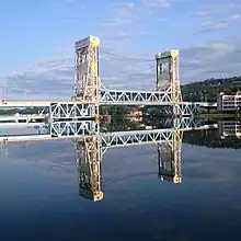 View of the Portage Lift Bridge from Houghton's Waterfront Trail.