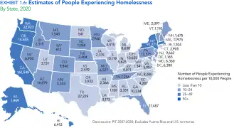 - "Homelessness Statistics by State", Usich.gov, Washington DC: U.S. Interagency Council on Homelessness