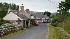 Hownam lies south of Morebattle on the Kale Water.[2] The parish borders England and has, within its boundaries, the Roman road of Dere Street and the Pennymuir Roman camps.[2] Hownam first appears in the written charters in the 12th century.[2] The origin of the name is uncertain, but may indicate a tribal name, "the Hunas".[2] The village itself is a small group of houses in a row on one side of the road.[2] The village church is at the north end of the village.[2] The church was reshaped in the 1750s and further modernised in the 1840s, and again following a fire in 1907.[3]