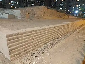 Fragmented ceramic material, vessels and funerary offerings[2] found during excavations are related to the late Ichma period, and some have Chancay and Chimu influence.[6] During excavations in 2010, 25 tombs were also found with around 100 human bodies, with hundreds of ceramic vessels and textiles. In addition, this huaca was also linked to productive tasks, religious worship, public congregation and as a cemetery.[7]