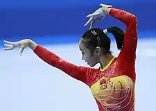 Huang Qiushuang (Chinese: 黄秋爽; pinyin: Huáng Qiūshuǎng), born on 28 May 1992, is a Chinese gymnast.[1] She is an individual all-arounder known for her clean form and artistry.[2] She was a part of the Chinese team for the London 2012 Olympic Games.[3]