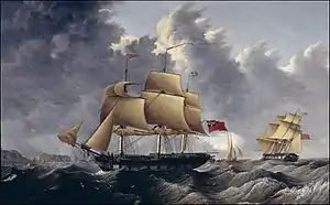![]() Hugh Crawford in two positions off a rocky coast; George L. Tuthill (1824), Australian National Maritime Museum | |