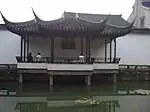 The main hall of the western garden. It is a typical mandrian duck hall but with four attached pavilions at the corners in Shanghai garden style. This hall was used for Kunqu Opera performances. |