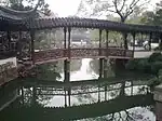 A covered bridge arched in three segments connected to a covered corridor on either end. It was designed to give the appearance of a rainbow shimmering when its reflection is stirred in the water. It is unique for being the only arched bridge in a Suzhou garden. |