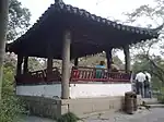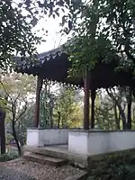 Also called the Pavilion of Exqusitiness, it is inspired by a verse by Su Shunqin, "Autumn drops in and tinges the dark woods red; moonlight pours down and grants the bamboo groves an exquisite look". It has a hipped gable roofline with flying eves. |