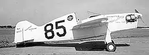 Together with fellow WASP aviators Anna Logan and Duke Caldwell, she formed a consortium to design and build such a plane, which required a stock 85 hp (63 kW) engine, fixed pitched propeller, and non-retractable landing gear.[2][3] Known ultimately as the "Hurlburt Hurricane", their design was powered by an 85 hp (63 kW) Continental C85 engine.[4] It was sponsored by the Goodyear Tire and Rubber Company, Continental Motors, and Kendall Motor Oil.[4] The trio moved to Michigan, where the plane was being built, to supervise and to put on the plane's covering themselves.[2] Its registration number was NX1223, with the 'X' designating it as an experimental aircraft.[5]