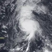 While moving past Puerto Rico, Tropical Storm Klaus dropped heavy rainfall peaking at 25.69 inches (653 mm) in Guavate Camp in the southeastern part of the island. Much of the southern half of Puerto Rico reported over 7 inches (180 mm) (178 mm). Vieques received around 7 inches of precipitation, while Culebra experienced over 10 inches (250 mm).[5] The heavy rainfall resulted in freshwater flooding.[4] The strongest winds of the storm remained offshore, and wind gusts peaked at 37 miles per hour (60 km/h) in Roosevelt Roads Naval Station. Winds and rainfall on the island resulted in downed trees and power lines, though damage was minimal. Klaus struck the island on election day, causing slight disruptions to the process.[6]