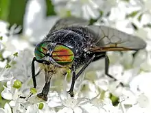 Males of these horse flies feed on plant juices, while female are bloodsuckers,[7] feeding mainly on mammalian blood, as they require a blood meal before they are able to reproduce. They may be very annoying for cattle, but usually they do not bite people.[7]