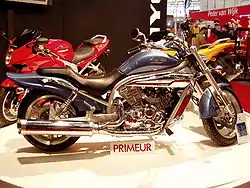 The Hyosung GV650 Aquila is a cruiser style motorcycle. Its V-twin engine is also found in the GT650R and GT650S sportbikes. The engine looks similar to the one found in the Suzuki SV650 by general layout, however sizes of practically all elements differ and the parts are not interchangeable.