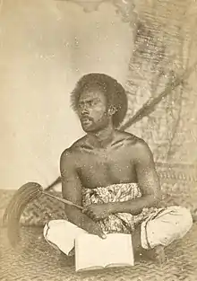 Used for ceremonial purposes, the i-Roi has been a key part of the Fijian Chief system and its status among the Itaukei is similar to the Samoan fue.[1] It has been incorporated into the culture of Fiji in relation to dominance, leadership and royal power. They can be made of coconut fibre, known as coir, attached to a wooden handle.[2]