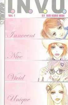 I.N.V.U. (pronounced as "I envy you"/an acronym standing for "Innocent, Nice, Vivid, Unique") is a manhwa series by Kim Kang-won, that tells the story of Sey Hong, the beautiful daughter of a novelist who has left her with a family of complete strangers named the Kangs, to go research her next novel in Italy. Sey often finds herself caught up in the slightly surreal schemes and romantic entanglements of her friends, acquaintances and potential suitor Siho Lee. There are a handful of odd secrets being kept from her by her new "normal" family, as well.