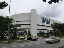 The International Merchandising Mart Mall (usually referred to as IMM Mall) is an outlet mall owned by CapitaLand Mall Trust, located in Jurong East, Singapore. Opened in 1991, it is a five-storey mall with 961,281 square feet (89,305.9 m2) of retail space. Besides retail stores, it also houses offices and warehouses for storage, which is advantageous in terms of cost efficiency to some retailers.[1] The mall has capacity for 235 retail outlets and 430 non-retail outlets. Anchor tenants of the mall include Giant Hypermarket, Daiso department store, Popular Bookstore and Best Denki.