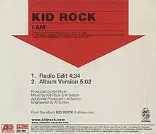 "I Am" is a song by American singer Kid Rock. It was released as the fourth single from his 2003 self-titled album and with no music video, it peaked at number 28 on the Billboard Mainstream Rock chart.