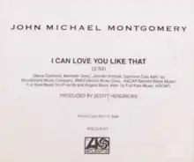 "I Can Love You Like That" is a song written by Steve Diamond, Jennifer Kimball and Maribeth Derry, and recorded by American country music singer John Michael Montgomery. It was released in February 1995 as the first single from his self-titled CD. The song reached the top of the Billboard Hot Country Singles & Tracks (now Hot Country Songs) chart.