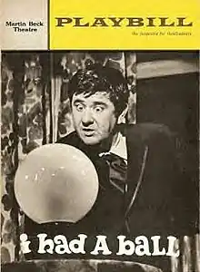 I Had a Ball was similar to earlier projects designed to showcase the talents of a comic, short on plot and overloaded with vaudeville-like comedy routines and musical numbers. In this case the star was nightclub and television comic Buddy Hackett, appearing for the first time in a structured theatrical production. Steven Suskin called this the "clown show"; "They were about the fellow — almost always a man — at the center. Ed Wynn or Bert Lahr or Victor Moore or the brothers Marx..."[1]