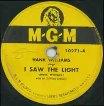"I Saw the Light" is a country gospel song written by Hank Williams. Williams was inspired to write the song while returning from a concert by a remark his mother made while they were arriving in Montgomery, Alabama. He recorded the song during his first session for MGM Records, and released in September 1948. Williams' version did not enjoy major success during its initial release, but eventually it became one of his most popular songs and the closing number for his live shows. It was soon covered by other acts, and has become a country gospel standard.
