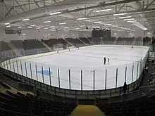 Ice Arena Wales (Welsh: Canolfan Iâ Cymru; known as Vindico Arena for sponsorship reasons) is an ice hockey rink in the Cardiff International Sports Village in Cardiff, Wales. It opened on 12 March 2016, and had two ice rinks and seating for 3,088 spectators. The ice rink currently only has the use of one rink, with the smaller public pad leased out by Cardiff Council to Sayers.