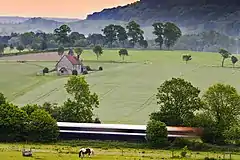 ![]() Train and St Hubert's church, painting | |