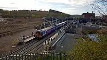 In October 2014, it was announced that the cost of proposed flood protection work had exceeded the available budget for the project and thus required a cheaper solution to be found; eventually the design of station was de-scoped to avoid working inside of the flood plain area.[3] At the same time, it was announced that this had further delayed the start of construction until 2015, and pushed the opening date to "late 2015".[8] Additional work was performed at the site during this time, such as the including the assessment and stabilisation of nearby mine workings.[3]