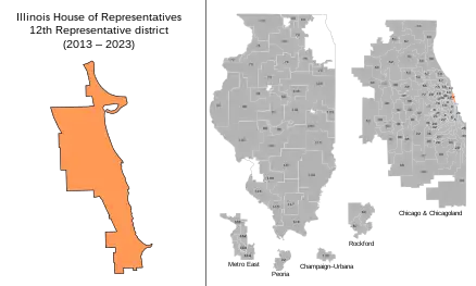 - ↑ "STATE LEGISLATIVE DISTRICT REFERENCE MAP: State House District 12 (Illinois)" (PDF). United States Census Bureau. May 18, 2013. Retrieved October 21, 2021.