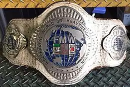 Even with the belt being dropped by FMW, the original title belt is still used, which bears the "FMW" name on it. In May 2010, a new championship belt was made, as Tarzan Goto's Super FMW promotion briefly revived the FMW Independent World Junior Heavyweight Championship to determine its final champion.