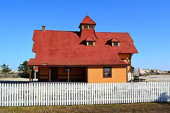 The Indian River Life-Saving Station was established at Rehoboth Beach, Delaware in 1876 to rescue mariners shipwrecked along the Delaware coast, as part of the United States Life-Saving Service. It was designed in 1874 as a 1+1⁄2-story board-and-batten frame structure with decorative brackets supporting overhanging eaves in a version of the Queen Anne style. It sheltered a surfboat which could be quickly rolled out through double doors facing the beach and down a ramp to the water. The main station house remains of what was once a complex that included a barn, stable, meat house, feed house and privy. An auxiliary boathouse stood about a mile to the south. The original plans for the station survive.[2]