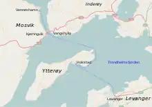 The Vangshylla–Kjerringvik Ferry connected the municipalities of Inderøy and Mosvik across the sound Skarnsund, at the narrowest point of the Trondheimsfjord. The route operated from 1 June 1964 to 19 December 1991, when it was replaced by the Skarnsund Bridge. It was part of Norwegian National Road 755. The ferry had hourly services in each direction through most of the day, and the crossing took seven minutes.[21]