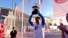 Team North America leader Marcin Rozpedski, holding the trophy earned by Team North America at the inaugural 2017 Bainbridge Cup
